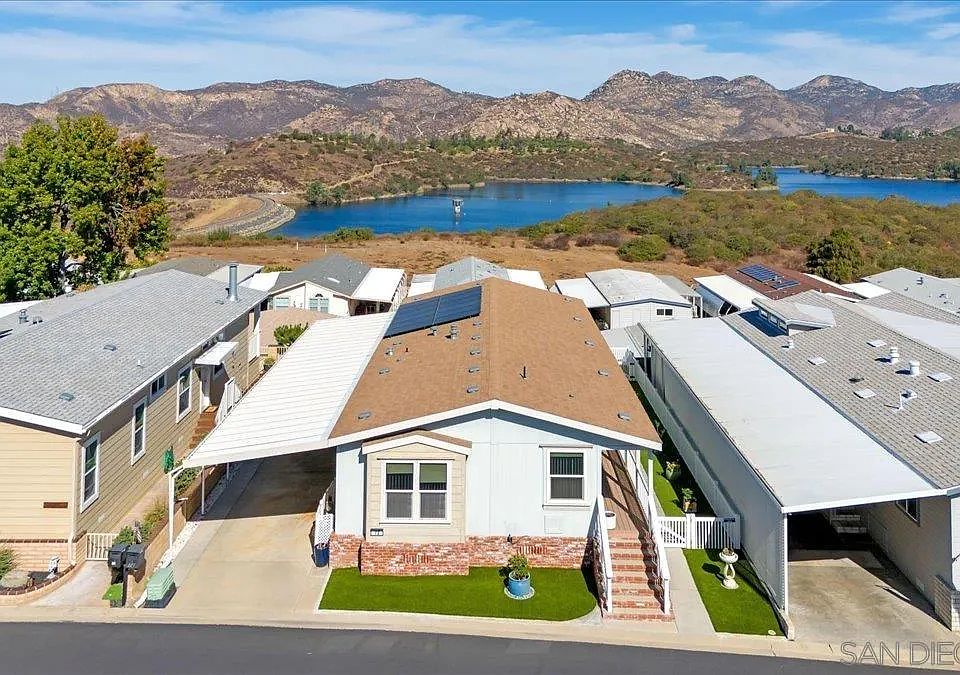 Price Improvement!! Welcome to your dream home in Lake Jennings Park Estates, where you own both the home and the land! This stunning property offers panoramic views of Lake Jennings and the surrounding mountains. Imagine starting your mornings on the back porch, watching the sunrise with a cup of coffee in hand. Situated in a premium location with low HOA fees of just $241/month, this home is FHA and VA approved. The paid-off solar panels mean the current homeowner enjoys $0 electricity costs! The master bathroom has been recently remodeled, featuring elegant marble countertops, tile flooring, and a custom tile shower. The home also boasts new turf and vinyl fencing around the front, side, and backyard – perfect for your furry friends. Enjoy the bonus courtyard sitting area, just off the spacious back deck. Additional upgrades include fresh interior paint, modern light fixtures, a new sliding back door, upgraded railings, and a workshop with electricity and a cooling unit. Plus, the home is equipped with a whole-house water softener. You’ll have access to great amenities including a pool, hot tub, craft room, and various community events. 55+ living at its finest! This gem won’t last long—schedule a showing today!