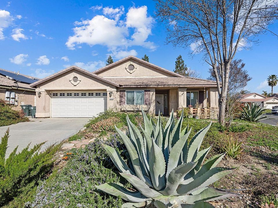 This beautiful home in Southwest Bakersfield sits on a corner lot in a great location near top-rated schools, parks, and shopping centers. The backyard is a peaceful retreat with a spa, a koi pond, and water-conserving landscaping in the front yard. Inside, the open-concept kitchen overlooks the dining area and living room and features cherry cabinets, hardwood flooring, and a walk-in pantry. The split-wing design offers privacy, while the bedrooms have carpet and tile in the laundry room and bathrooms for added comfort. A dedicated office space, inside laundry, central AC and heat, and an EV charger provide modern convenience. Don't miss out on this inviting homeschedule a tour today!