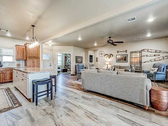 Wide Open Spaces, Country Charm, and Modern Comfort If you’ve been dreaming of country living with a small-town feel—on paved roads and with all the space you could ever need—this is the one! Sitting on just over 67 acres, this property offers endless possibilities. The inviting open floor plan features 3 spacious bedrooms, 2.5 baths, a study, and a cozy bonus room upstairs. The split master suite is a true retreat, with a luxurious walk-in shower, relaxing soaker tub, and an oversized walk-in closet. For peace of mind, there’s a built-in walk-in storm shelter, and for your hobbies or work, a massive 40x60 metal building with electricity and concrete flooring—perfect for projects, equipment, or storage. The property is thoughtfully set up for livestock with perimeter fencing, piped fencing near the home, and small cattle chutes ready to go. Imagine waking up to peaceful country views, tending to animals, working in your shop, or simply enjoying the wide-open space with family and friends. This is more than a home—it’s a lifestyle.