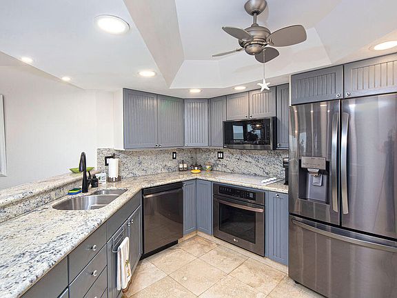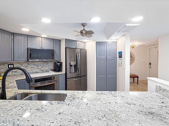 Beautifully upgraded 3BR/2BA residence in the highly desirable Islandia II. This home features travertine flooring throughout, an updated kitchen with custom cabinetry, granite countertops, and stainless-steel appliances. Both bathrooms have been completely renovated with high-end finishes. The owner's suite includes a custom walk-in closet. Enjoy a split floor plan, wet bar, custom built-in entertainment center, and in-unit laundry. Offered partially furnished with an additional storage closet. Community amenities include two pools, beach access, pickleball, tennis, dog park, fitness center, game room, bocce, and billiards.