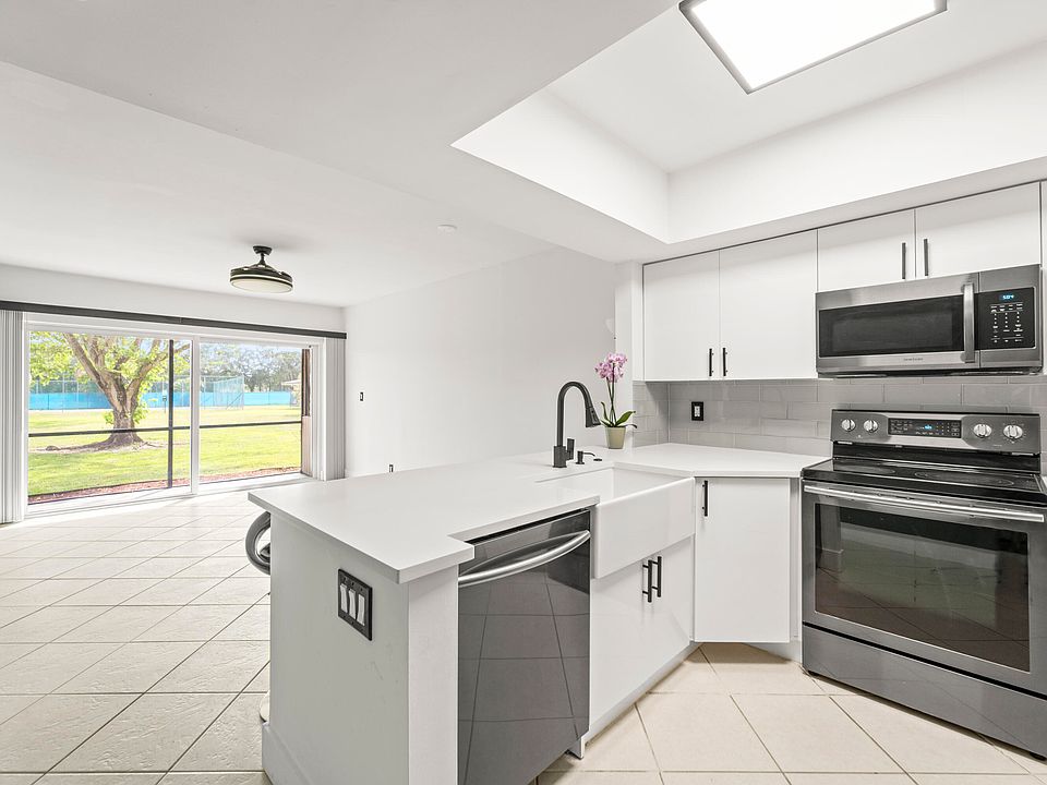 Move-in ready and beautifully updated 2BR/2BA + bonus room in Village Green! This first-floor home was fully renovated in 2021 with new plumbing, electrical, and energy-efficient appliances. Impact windows, doors, and sliders added in 2024, plus fresh interior paint and a new roof in 2025.The community has a fresh new look with updated stucco, grey exterior paint, and modern lighting. Enjoy a private porch overlooking the tennis court and pool. Bright open layout, natural light, and modern finishes throughout.All condo assessments are paid in full. HOA includes cable, water, and exterior insurance. Great all-ages community with A-rated schools, close to shopping, dining, and major roads.