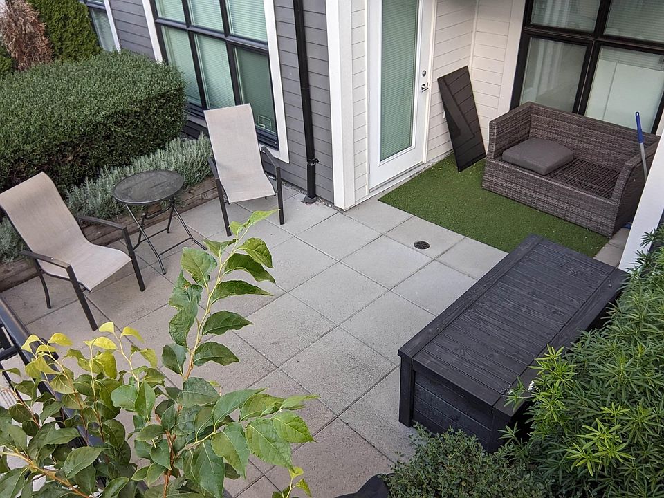 Trafalgar Square by Polygon, within walking distance of hundreds of shops, services and restaurants. 2 bedrooms and 2 full baths with a large private patio garden and outdoor water tap. Air conditioning. Over nine feet ceilings in main living spaces. Updates include new laminate flooring and wallpaper in bedrooms. Next door to the exclusive 5400 square ft. of amenities at the Trafalgar Club including a grand lounge, fitness studio/weight room, table tennis, billiards, music practice studio with piano, outdoor patio and children's play area... 2 PARKING SPOTS total (one parking with a 110V outlet) and 1 locker included! Open house Saturday Nov 8, 2025 2-4PM