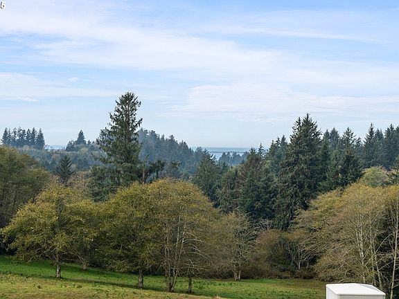 You’ve found your PEACEFUL, LUXURY RETREAT with expansive Mountain VIEWS and even some Bay and Ocean! Quality constructed with comfort in mind; features include beautiful Hickory floors throughout, contemporary kitchen with huge pantry & breakfast bar, spacious living and family rooms, and wrap-around porch with bright sunroom for gazing upon your 14+ elegant acres. The elk and deer will welcome you. Primary suite offers extra large bath with walk-in shower and TWO separate sink areas and TWO walk-in closets. All this on ONE LEVEL! Oversized, 3-bay garage holds two cars, a 20ft boat, plus extra storage in the loft above. Acreage has ample room for your development dreams. Located in a private neighborhood nestled in the hills of Bay City, this one-of-a-kind treasure is built for impressing — and de-stressing!