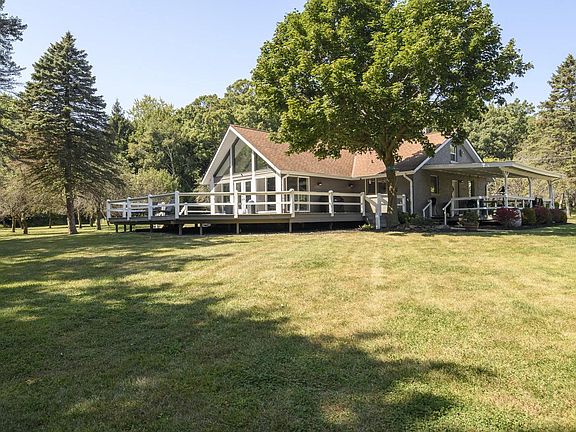 Located 10 mins to I-94, 5 mins to IL border & Amtrak station. This peaceful & secluded 30 acre property features an updated 2 story Farmhouse, original barn w/cathedral ceilings, 4 door pole barn, chicken coop, & a spring fed pond! Enjoy private access to the bike trail. Perfect for your dream hobby farm, horse equestrian or bee farm. Two established hay fields and is surrounded by protected private wetlands. Easement on 28th Ave allows this parcel to be split and/or developed. Many updates including: front porch w/metal roof & deck painted 2024, lower level remodel w/egress & bathroom 2023, replaced most windows & house humidifier 2018, chimney replaced & new wood burner 2017, copper water lines & electrical updated 2017. 1 yr home warranty included. You have to see it to believe it!