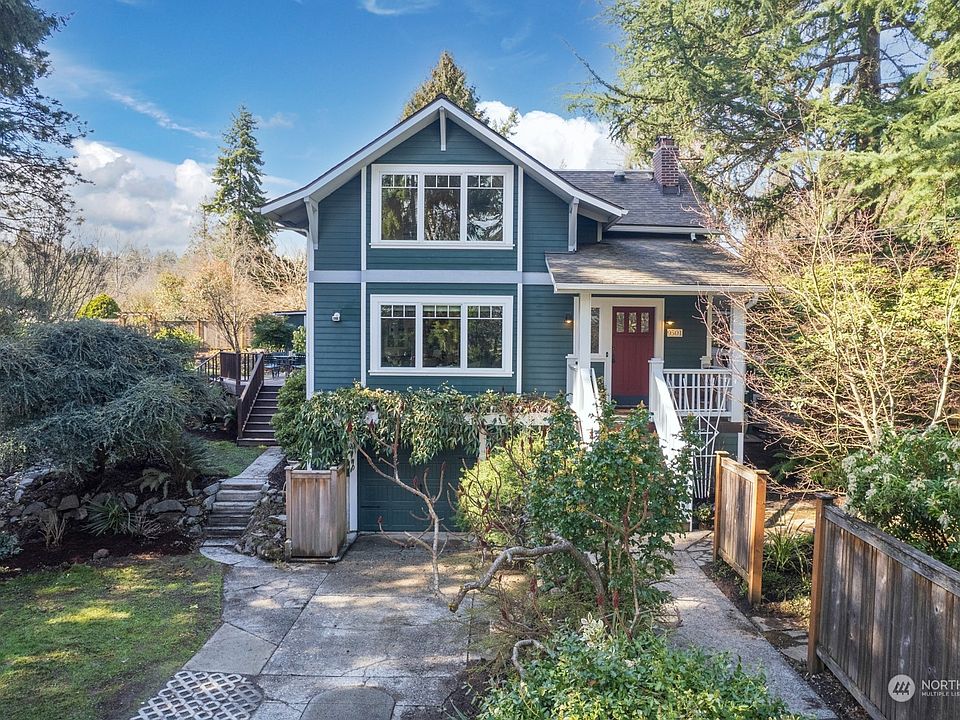 Peace, seclusion + optionality abound at this incredibly special Matthews Beach retreat. Gardeners, find paradise: oversize lot on dead end abuts the park and Burke Gilman. Enjoy your own urban arboretum w/endless opportunities for the green thumb - without sacrificing convenience or connectivity. Great proximity to UW, Children's, Northgate, transit. Proud Craftsman updated in timeless style has fabulous flow through bright, elegant day rooms to the outdoors. Large suite on main could be primary, MIL? Upstairs find spacious primary ensuite + storage galore, plus 3rd bed + 3/4 bath, sunny reading nook and sweet office. Quaint 1br backyard cottage offers many possibilities. Come explore a verdant hideaway, ready for you to put down roots.