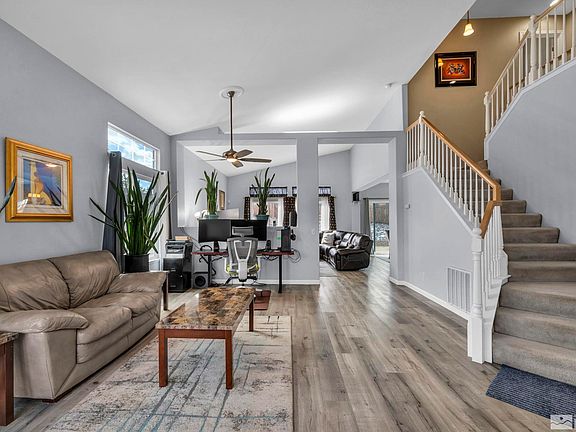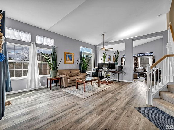 Discover this beautiful 4 bd home nestled in the desirable North Valley, just minutes from area parks, shopping, schools, and University of Nevada Campus, and downtown Reno. Walking and biking trails to enjoy this neighborhood location. Featuring a bright and open floor plan, with high ceilings, this home offers spacious living and family rooms perfect for entertaining or relaxing. Enjoy the kitchen with generous granite counter top space, and plenty of storage options., This four bedroom home provides plenty of space for a family or those who need the extra space of a home office and or hobbies. The primary bedroom is generous in size with a sunny bright primary bath with a garden tub, walk-in shower, double sinks, and walk in closet. This home has been upgraded with new LVP flooring, new HVAC system, new windows, water heater, and rain gutters. The oversized 588 sq ft two-car garage provides ample storage space, yes, you can park your truck in this garage! This home checks all the boxes on your search.