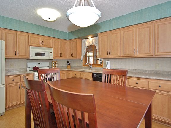 Corner wooded lot with 4 Bedroom 3 level home has newer 3 season porch with ceramic tile and carpet floor and beautiful knotty pine vaulted ceiling; complete kitchen remodel 2 years ago with laminate wood flooring, Silestone countertops, ceramic tile backsplash and granite sink. 3 bedrooms up with ceramic tile full bath, 1/2 bath in master bedroom. Finished lower level with family room, bedroom, 3/4 bathroom and large crawl space storage area. Centennial Schools