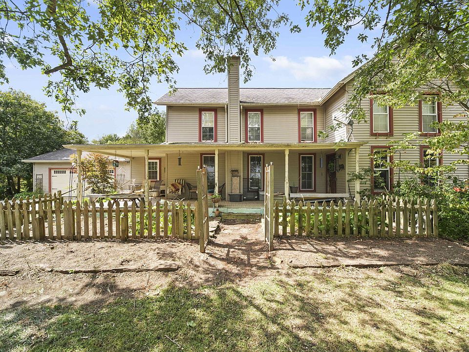 House, outbuildings, farm, natures beauty and peace. This is what you will find here. House is almost 2400 sg ft, 4 bedroom, possible 5th bedroom on main floor, 2 full bath, 3 seasons room, beautiful wood burning fireplace, 2 car attached garage. Hay barn w/a woodshop that leads to the pasture for all of your farm animals, pole barn to store all of your equipment, a beautiful garden house, a granary that they turned into a school house that has heat/ac.The back patio leads to a custom made leaf shaped overlook of the river. This home/outbuildings on 20 acres with 13.50 acres across the road are waiting for the next owner to bring it back to life and the beauty that it once had. So much potential with this really cool property. SOLD AS IS.