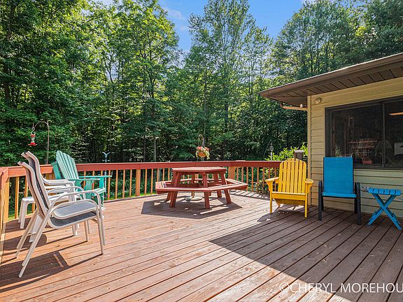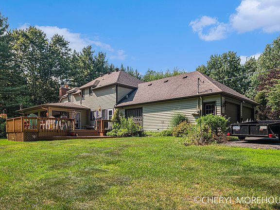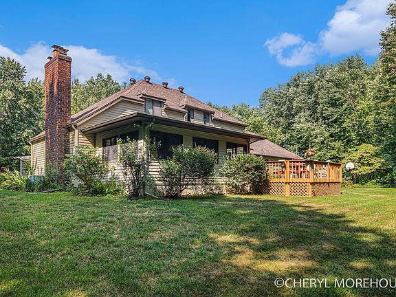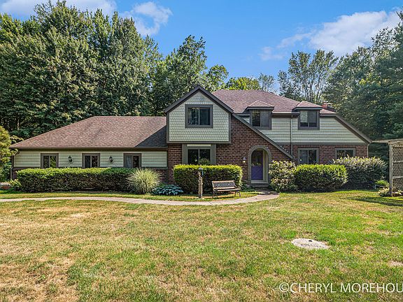 The setting for this English tudor, two story, home will amaze you! Private and wooded property with a wealth of wildlife to enjoy from your 4 season room or the large deck/patio. Sellers have owned this home for many years and have loved every minute of it. Well-constructed in 1979 offers the feeling of fine living with a formal dining room, library/den, great room, four season room, kitchen with breakfast nook, back entry laundry and a guest bath! The 2nd floor holds the primary suite as well as an additional three bedrooms and a 2nd full bath. This sale includes two separate parcels, already split, with one parcel consisting of 5.67 acres and the parcel with the home consisting of 3.06 acres. Per the township you are allowed to build one more home on this private road without the necessity of the road being upgraded (buyer to verify). Home offers an underground fence, gutters with leaf filter, woodshop in the basement level with stairway to the garage, generator hookup and an abundance of tranquility! (Per Seller, No association, neighborhood agreement that they each pay $250 a year for road maintenance)