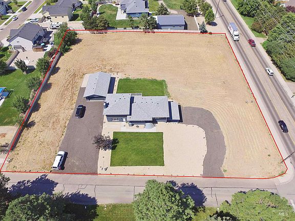 Beautifully remodeled home on nearly 2 irrigated acres in SW Boise, no HOA and connected to city water/sewer with potential for lot split or development (buyer to verify). Main level features kitchen w/ quartz countertops, formal dining, and a master suite w/ walk-in shower & dual vanities. Upstairs has 3 bedrooms and full bath. A few steps down leads to a 2nd living space w/ fireplace, laundry/mudroom, and access to a private-entry in-law suite in the walkout basement w/ its own kitchen, bath, bedroom, and laundry. Detached garage w/ small shop, new sod & sprinklers, RV/horse/toy parking, and plenty of room to build. Great for multi-gen living, rental income, or investment flexibility.