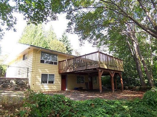 Quiet & peaceful home in great Maple Leaf location! Solid bones with new roof & exterior paint just completed. Inside ready for you to make shine again! Enjoy beautiful bay windows & French doors opening to huge deck with greenbelt backdrop. Main floor has three rooms including large bedroom with oversized closet & half bath. Downstairs has spacious rec room & two more bedrooms. 2-car carport plus additional off-street parking. Trail at end of driveway leads to park & play area. Come see today!