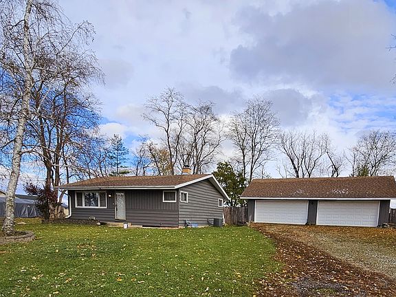 Charming Ranch with 4 Car Dream Garage on large private lot. 2 Bedroom with 1 Bath on Main Level. Open floor plan. Spacious Living Room which opens up to updated kitchen with newer cabinets and stainless-steel appliances. Custom Hickory Flooring on main floor and new blinds. Simplicity at its best. Large mud room with great potential with exterior door to back yard and access to the basement. Unfinished basement with half bath and Laundry area waiting for someone to finish the area for game room. The 4 Car Garage is great for storage or a workshop. Freezer and Pool Table on site will stay. Close to Rotary Park with walking, fishing and great views. Major Roadways and shopping within minutes. Sold "AS-IS"
