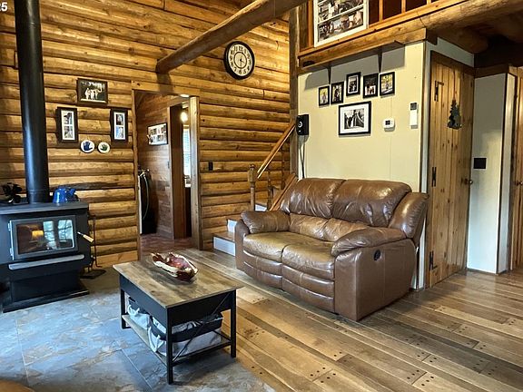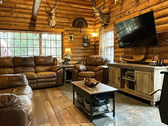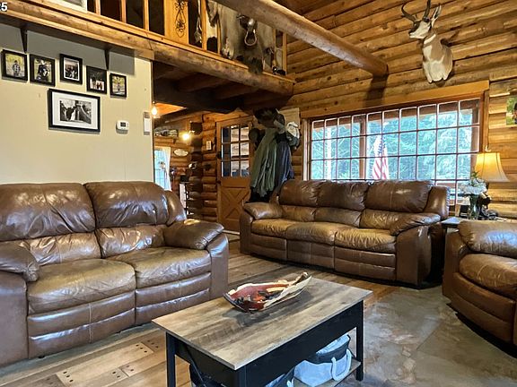 Dreaming of a log cabin in the country? Look no further! This stunning home features an extravagant vaulted design that exudes rustic cabin charm. The main bedroom enjoys its own private level, while the eat-in country kitchen provides views from every window! The welcoming personality that radiates throughout this log home.Step outside to relax on the deck or the spacious 20' x 8' covered porch, which overlooks your property. The basement includes a workshop area, adding extra functionality to the home. Nestled in the picturesque Mohawk Valley, this gem is close to scenic hiking trails and just minutes away from delightful local amenities, including a café, post office, Shotgun Park, and country store. Conveniently located, it’s only 21 minutes to Sweet Home and 25 minutes to Springfield.Brand-new standard septic system was installed in 2025. Don’t miss out on this country paradise!