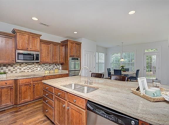 If you've been searching for a home with the perfect combination of elegance, easy maintenance, and convenient location then your wait could be over. This home is situated on a very manageable 1/3 acre lot that won't require your entire weekend to keep looking good and it backs to a wooded area where you'll occasionally spot deer and other wildlife. Inside you'll find a striking combination of features, including ten-foot ceilings and a beautifully curved staircase, that you won't often find at this price point. The kitchen is very spacious and you'll appreciate the stone countertops, a double oven & separate cooktop, and an island with breakfast bar. With an open floor plan, tall ceilings, and plentiful windows the entire first floor is bright & airy and there are great outdoor views from every room. Upstairs you'll find 4 generously sized bedrooms and a large loft overlooking the great room. The master suite has a tray ceiling, large windows, and an impressive bathroom.