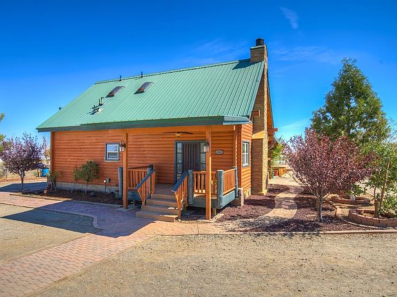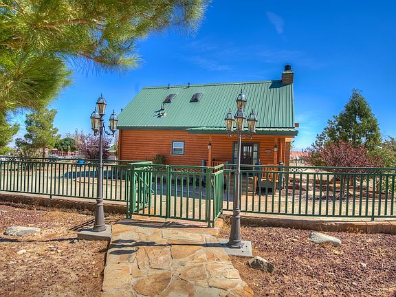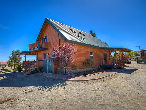 One of a kind log cabin inspired home conveniently located near HWY 138. Main house has 1 bedroom and 2 baths but guest home has 3 bedrooms 2 baths. You will appreciate the attention to detail as you tour the lot. Thie cabin is equiped with a giant single bedroom loft, 2 full bathrooms and a large kitchen with high end appliances. You will love the open floor plan and oversized living space. A modular guest home sits on the property with 3 bedrooms and 2 bathrooms. Each home has its own septic system and propane source. This guest home has beautiful log siding and a stamped concrete foundation which perfectly matches the main house. There is also a detatched 2 car garage and tree house built to the highest of standards, both of which are designed to match the rest of the buildings on this property. This level corner 2 acre lot is ideally location with tons of graded usable space. Both the log cabin and guest house have giant covered patios with tranquil desert views. The property is gated and split with rot iron automatic gates and chain link around the rear. There are stamped stain concrete walk ways to all locations. This is a must see, you are sure to fall in love as soon as you arrive.
