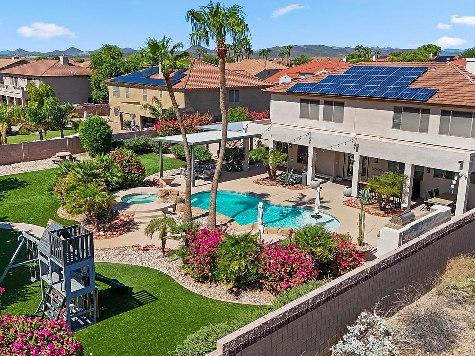 Welcome to this stunning RV and boat-friendly 5-bedroom home with a dedicated office, set on a spacious .42-acre lot that perfectly blends comfort, style, and functionality. Inside, you'll find fresh neutral paint, newly refinished kitchen and bathroom cabinets, and a generous layout featuring a huge loft, inviting bar area, and cozy fireplaces. Step outside to your resort-style backyard oasis, complete with turf, a new large pergola with Philips Hue-integrated LED lighting and misting system, a built-in BBQ, and a brand-new pool and spa heater with Pentair controls. A widened RV gate, new roof (2022), downstairs AC replaced in 2021, and countless thoughtful upgrades throughout, this home is move-in ready and designed for both relaxation and entertaining.