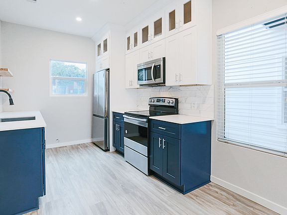 Unit with HUGE FENCED BACKYARD with FREE lawn care. Over $300k in remodeling with high end luxury touches throughout. 5 mins walk to Grocery, restaurants and shopping. 1 mile to elementary and middle schools, . 10 mins drive to Southpark Meadows. 8x UHD security cameras around the house to keep watch Each of the four units boasts the following: 1. Stainless steel flat cooktop range 2. Stainless steel Microwave, Dishwasher and Refrigerator 3. Dual color Blue and White Maple cabinets that goes all the way to the ceiling with glass doors - a million dollar custom home touch to show off ! 4. Bronze faucets in kitchen and all baths 5. High efficiency toilets 6. Hard flooring 7. Wifi controlled latest release Nest thermostat 8. Modern light fixtures and recessed lighting 9. Double pane windows for energy efficiency. Blinds included ! 10. No smoking anywhere in the property, even in balcony. Small pets ok at the discretion of manager. Free pest control. Free lawn care.