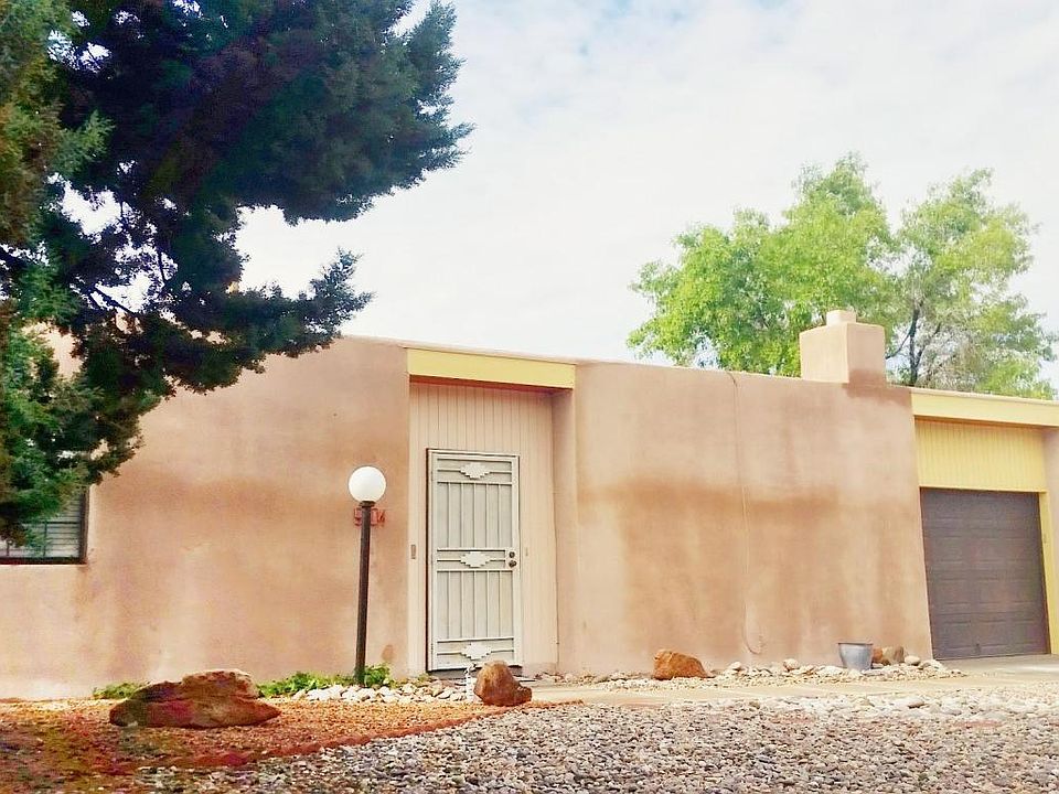 Enjoy the New Mexico flavor of the BRICK floors and Kiva Fireplace. New ROOF, New Driveway, New Stucco Skylights, updated Electrical box, Hunter Douglass blinds, a large DECK and beautiful back yard for entertaining, updated Kitchen with GRANITE counters and handsome cabinets and an atrium just inside the entry give this home the charm to live comfortably. Check in to see this lovely home today!