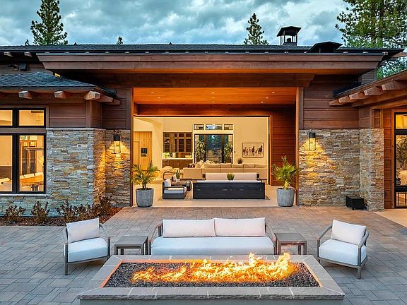 This single level 7,430 sq-ft home is primed for Martis Camp’s finest seasonal activities. The ski lodge is close by while the Tennis Pavilion and Springs Park are closer yet. From tall, south-facing windows, light pours onto the back patio & into a great room & dining room with pocket doors that disappear into the walls. One wing of this 5-bed/5.5 bath mountain modern home features 2 bedrooms, a media room & a junior suite w/kitchenette while the other wing hosts an office, bunk room & primary suite.