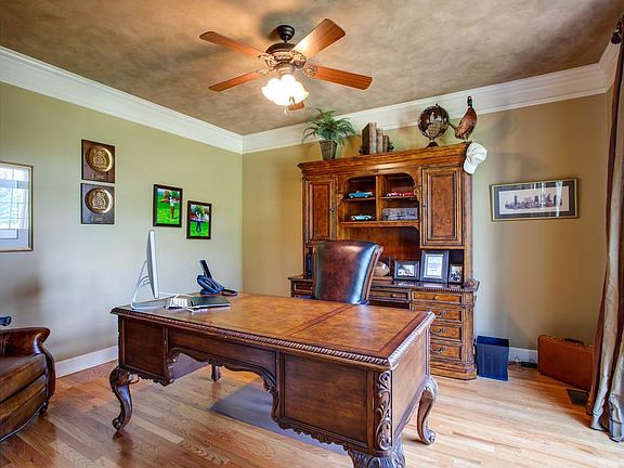 Lovely landscaped corner lot with extra large driveway turnaround area. Home backs to common area. Rich hardwood floors and wood burning fireplace. Remote blinds in two story den. Extra large kitchen with island. Built in gas grill on private patio. Irrigation system for the entire lot.