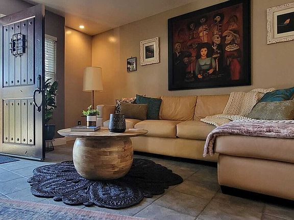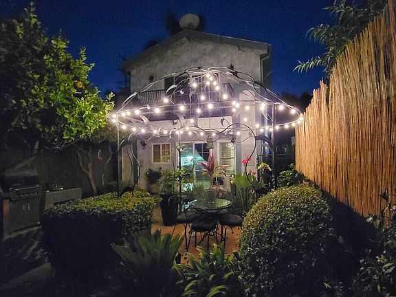 Available 10/01/25 - Comes fully-furnished, but open to swapping out some furnishings on request. Contemporary Mediterranean Home in Culver City! Charming and spacious two-story Mediterranean-style residence, offered fully furnished and ideally located in the heart of Culver City. Enter through a hedge-lined front gate into a private patio, where a rustic speakeasy door welcomes you into the open living room with tiled floors, leather furnishings, curated artwork, and a pebble mosaic fireplace. The country-style kitchen features granite countertops, checkered floors, and generous counter space, while the adjacent kitchen dining area offers an updated set with a modern touch. Upstairs, two bedrooms each enjoy their own balcony and hardwood floors. The primary bedroom overlooks the backyard garden, and the secondary bedroom--currently set up as an office--can also be used as a guest room. The backyard is designed for entertaining with an enclosed garden, gazebo, mature landscaping, and a built-in BBQ. A two-car garage provides direct access to the yard and home. Additional features: Solar panels for energy efficiency. Alarm system. Just a few blocks from downtown Culver City's theaters, farmers market, restaurants, bars, yoga studios, and shops. A welcoming neighborhood with a true community feel.