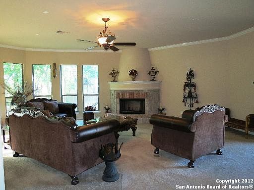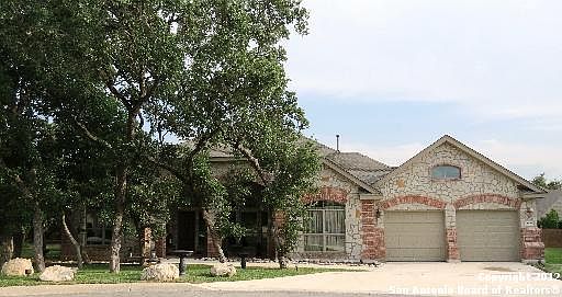 Exquisite single story is nestled among mature trees in a well kept Cul-de-Sac. Stately entry to an open floor plan w/soaring ceilings and archways. 3 Bedroom home w/Study & Formal Dining Room. Large kitchen w/breakfast bar, island, gas cook top & granite counter tops. Master bedroom w/fireplace & outside access. Secondary bedroom has outside access. Extra large utility room w/cabinets & wash sink. Large lot w/ many trees and large cleared section perfect for pool or play area.