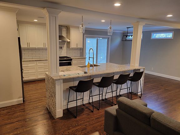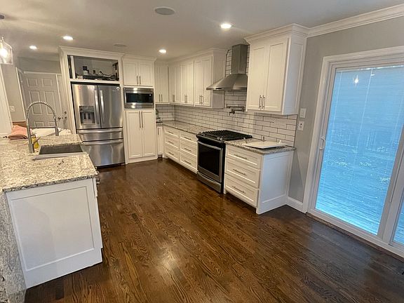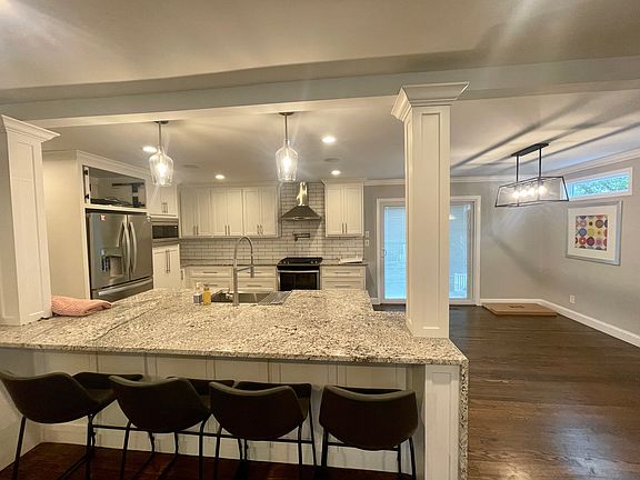 The professionally remodeled chef's kitchen features premium stainless steel appliances, including 5-burner gas rangetop and hood, pot filler, microwave, and refrigerator. The main floor includes designated dining area, kitchen island with seating for 4 (bar stools included), a large party deck, and fenced backyard. The finished walk-out basement provides more entertaining and relaxing space with a bar, 2nd full-size refrigerator, microwave, and half bath.