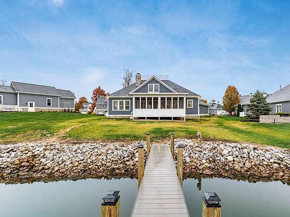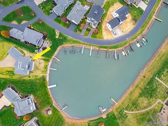 LUXURY ON THE LAKE, RIDE YOUR BOAT TO DINNER! NO NEED TO WAIT, THIS CUSTOM NEW CONSTRUCTION HOME IS READY TO GO FOR VACATION EVERY DAY. THIS SPRAWLING FIRST FLOOR OWNERS SUITE WITH AN OPTION FOR A GUEST SUITE ON MAIN LEVEL IS PRESTIGIOUSLY SITUATED ON ONE OF THE LARGEST LOTS ON HERON BAY AT BUCKEYE LAKE WITH STUNNING LAKE VIEWS FROM BOTH THE FRONT AND REAR OF HOME. BEAUTIFUL OPEN PLAN WITH 10' AIRY CEILINGS AND MASSIVE DOUBLE QUAD SLIDERS LEADING TO LARGE PRIVATE SCREENED PORCH AND PRIVATE COMPOSITE DOCK. GORGEOUS QUARTZ CHEFS KITCHEN WITH AMAZING CENTER ISLAND & CUSTOM SOFT CLOSE CABINETRY. OVERSIZED 3 CAR GARAGE HAS SIDE MOUNT OPENER FOR CAR LIFT AND EXPANSIVE AGGREGATE DRIVEWAY. CUSTOM BUILT ON SITE STAIRCASE LEADS TO 2ND FLOOR WITH SPACIOUS JACK & JILL SUITES. FULL LOWER LEVEL WITH POURED WALLS, 9' CEILINGS & BATH/BAR PLUMBING FOR ADDITIONAL 2,100 SQ FT. CUSTOM FINISHES WITH SHUTTERS, POWER SHADES, CUSTOM CLOSETS, IRRIGATION, CUSTOM LANDSCAPING (SEE NOVEMBER INSTALL PLAN), SMART SECURITY, CULLIGAN WATER SOFTENING SYSTEM, SEE ATTACHED LIST FOR FULL DETAILS. RESIDENTS ENJOY THE HEATED COMMUNITY POOL, CLUBHOUSE, PICKLE BALL, TENNIS, BOCCE BALL, SHUFFLE BOARD, BASKETBALL, DOG PARK, PAVILION FOR EVENTS, WALKING TRAILS, ETC. MINUTES TO ALL THE POPULAR LAKE RESTAURANTS, ENTERTAINMENT & AREA ATTRACTIONS BY BOAT OR CAR. COME SEE TODAY.