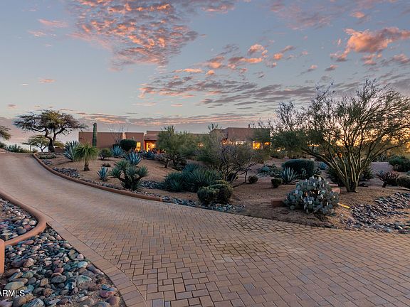 You MUST bring your client to see the amazing panoramic mountain views at this custom estate. Drive up the newer paved driveway and enter through the stunning iron and glass front door. This home has a wonderful split floor plan. The gourmet kitchen features top of the line stainless steel appliances, recessed lighting and a ton of kitchen cabinets for storage. The eat in kitchen is a beautiful spot to watch the sunrise over the beautiful desert views. The home features 3 en suite bedrooms and a huge primary bedroom with stunning fireplace and the most amazing closet. Lastly, the backyard sanctuary has a heated pool, pavers and a built in BBQ. The lot line goes well past the fencing to the stakes and spray paint. Plenty of room for guest/pool house. DONT LET YOUR CLIENTS MISS THIS ONE