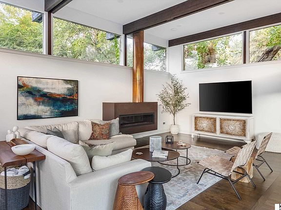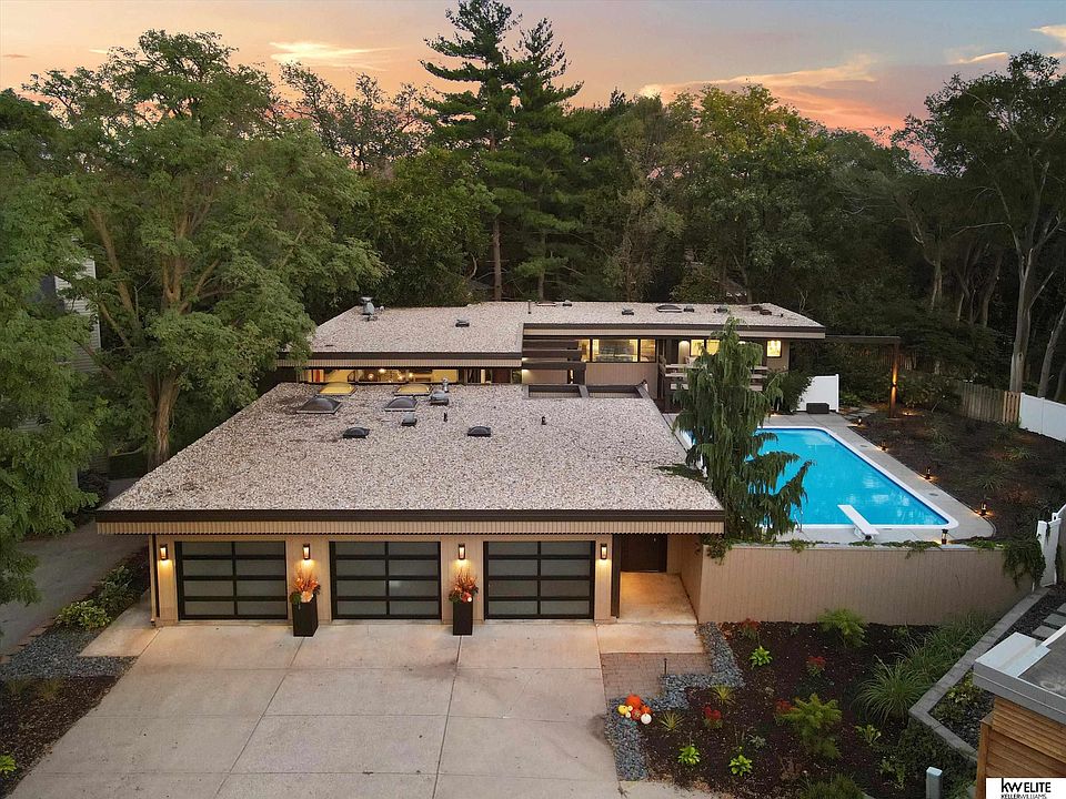 This stunning Don Polsky original mid-century masterpiece in the heart of District 66 is the entertainer’s dream. The moment you step into the courtyard, you’ll feel as though you’ve left Omaha. The main level features a wall of windows overlooking the pool, high ceilings, and chef’s kitchen with many custom pull-out drawers and cabinets, windows opening to the pool bar and two walk-in pantries. The primary suite takes up the entire second level and features a fireplace, private balcony overlooking the pool and courtyard, completely updated bath with soaking tub, steam shower, heated floors and a dream closet with washer/dryer. The courtyard wraps around the large inground pool (with diving board) and features lush custom landscaping & lighting, exterior 3/4 pool bathroom and bar opening to the kitchen. You will not want to miss this unique home!