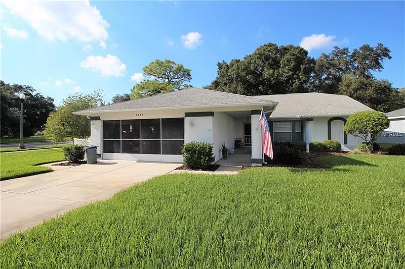 Timber Greens Single Family Home located in the main gate on a beautiful corner nature preserve lot with views of the golf course. The home has a 3 bedroom split plan with 2 baths and a 2 car garage. The spacious home has a large family room, new kitchen with open floor plan into dining area,New updated bathrooms, new tile through out, heated floors in bathrooms, master bedroom and kitchen work area. New roof and a/c. Timber Greens is a 55+ Gated golf community. There are many amenities in addition to golf including a beautiful large pool, a wonderful active clubhouse, 19th Hole Bar and Grill, tennis, bocce,, fitness and many more. It is conveniently located near Starkey Wilderness Park, shopping, restaurants, beaches and medical facilities. Wall unit in Family Room is available for sale.