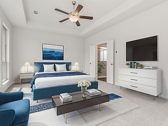 This spacious two-story residence features 4 bedrooms, 3.5 baths, and over 3,100 sq ft of elegant living space. The open concept layout includes a bright living room, stylish dining area, and a gourmet kitchen equipped with a gas cooktop, built-in oven, large island, and walk-in pantry. The primary suite is located on the main floor for added privacy, featuring a spa-like bath and generous walk-in closet. Upstairs offers three additional bedrooms, a game room, and a media room perfect for family fun or entertaining guests. With upscale finishes like wood-look tile, plush carpeting, and designer touches throughout, this home blends comfort and luxury effortlessly. Situated on an 8,500+ sq ft lot, the home includes a 2-car garage plus covered carport parking, and is part of Denton ISD, zoned to excellent schools. Enjoy community amenities, nearby Lake Lewisville, and convenient access to parks and shopping. This move-in-ready home combines modern design, space, and location.