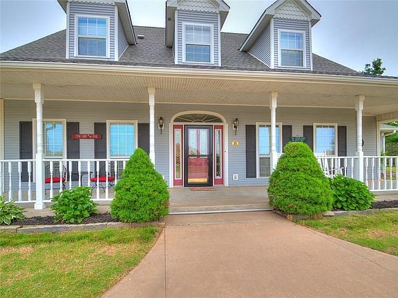 Price reduced for quick sale! Dream Country Estate with wrap around porch, circle drive and side entry 4 bay garage! Amazing one of a kind home on 2.245 acres with a great spot for a 40x60 building plus huge beautiful pine trees!! EASY acess to downtown Okc, Yukon, and El Reno. 5 bedrooms and 2 offices, hobby room/office up PLUS 4 beds and 2 full baths up with large game room, 2 beds down one can be handicap accessible mother-in-law or 2nd office, 2 living down. Updated throughout. Rural water. Indoor/outdoor heated pool for year round enjoyment, ceiling and sides open up to enjoy the sun in the summer. Master closet is an F5 rated safe room. 4 bay garage space with 3 car garage opening (great workshop area). Storage everywhere. Wrap around porch to enjoy the countryside view. 2 miles to I-40 quick access to everything in Yukon and Okc. Would also consider Lease or lease to purchase. Call Sam at 405-822-3655