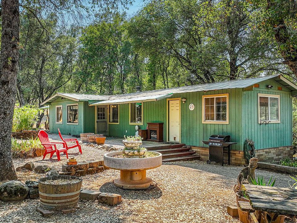 Nestled on gently 5.60 acres of rolling hills, the mobile home sits on a generous stretch of rural land transformed into a picturesque park-like haven. Here, the serenity of nature envelops the home, offering both quiet retreat and open space for gathering, play, and contemplationa perfect blend of rustic charm and tranquil beauty. 2 reliable water wells supply fresh, cool water, supporting both daily needs and a thriving array of gardens where seasonal vegetables and heirloom flowers flourish beneath the towering oak trees. The mobile home includes 2 bedrooms, 2 full bathrooms, tile and laminate flooring and numerous windows that provide natural light and allow views of the property from each room. The kitchen is equipped with updated appliances, and a stackable washer and dryer are in one of the bathrooms. On chilly evenings, the crackle of a wood fire brings warmth and amber light to the living room, inviting family and friends to gather around its comforting glow. Outdoor Building plus multiple sheds for storing belongings, firewood, and animal feed. Property includes electricity, generator, septic system, two water wells, and two holding tanksone near the house and one by the garden, which could also serve as a potential building site. Spacious parking and a picnic area with a water fountain and pond offer a peaceful, private setting for gatherings. Consider this exceptional property as your primary residence or an exclusive retreat for vacations.