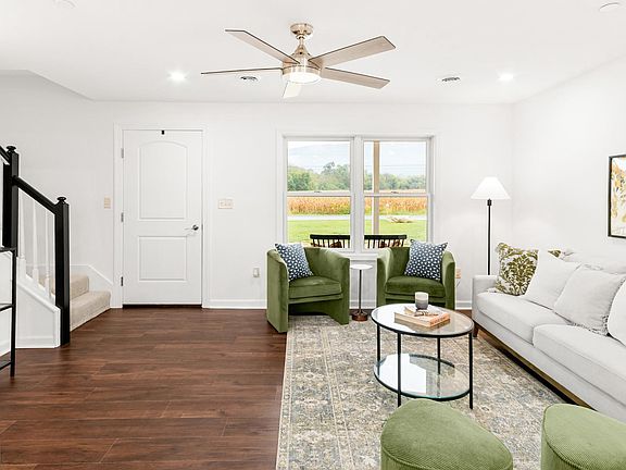 Rear patioOversized showerLuxury vinyl tileQuartz countertopsLarge island with seatingPrimary suiteSpacious front porch
