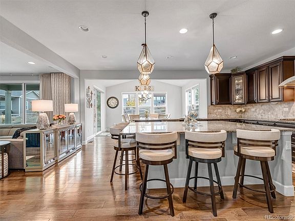 Entertain in your large kitchen/great room, relax outside on the extended partially covered custom patio, which has dual gas lines for grill and fireplace! The first floor is bright and open with dining room, gourmet kitchen, large pantry, nook/sunroom, great room, powder room, and bedroom.