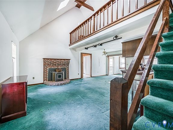 Step inside and you’ll find a home full of character and potential, featuring vaulted ceilings, exposed beams, and an open layout flooded with natural light. The main level includes a large living room with hardwood floors and bay windows, a functional kitchen ready for your updates, and multiple flexible spaces perfect for dining or entertaining.