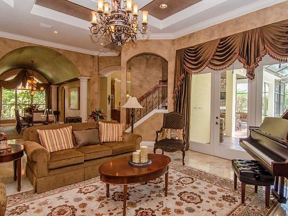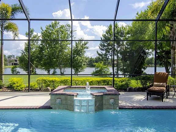 Surround yourself in luxury and comfort in this gorgeous home in the gated community of Tree Tops. Custom designed and built in 2007 by Hannah Bartoletta this home offers the finest luxury finishes & details that truly make this home breathtaking. Featuring 5 Bedrooms, 4 1/2 Bathrooms, 5000 Sq Ft of air conditioned living space, and a 4 Car Garage you will love to call this home. Ideally located on an oversized lot with gorgeous landscaped grounds, this home was designed to maximize the breathtaking lakefront setting. Upon entrance you will notice the exquisite travertine marble floors, volume ceilings, crown molding, tray ceilings, solid wood doors, plantation shutters, designer lighting, and a 430 bottle climate controlled wine room that makes entertaining a pleasure. Your gourmet kitchen features professional grade appliances including a Sub Zero Refrigerator, 2 dishwashers- Asko and Fisher Paykel, Wolf range, double ovens and a warming drawer. Your downstairs master suite features rich wood floors, walk in closets, and a master bath with beautiful cabinetry and granite counters. Downstairs is complete with a home office and a guest bedroom with private bathroom. Beautiful wood floors adorn the 2nd floor which offers 2 bedrooms with a shared bathroom and an additional bedroom that could also be a bonus or game room. Your backyard oasis includes a heated pool and spa, an oversized screened patio, a stone fireplace, an outdoor kitchen and panoramic lake views that make this setting spectacular.