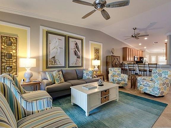 One-car detached garageTwo screened-in lanaisAccent wallsSpacious denCustom designer finishesPlantation shuttersCrown molding