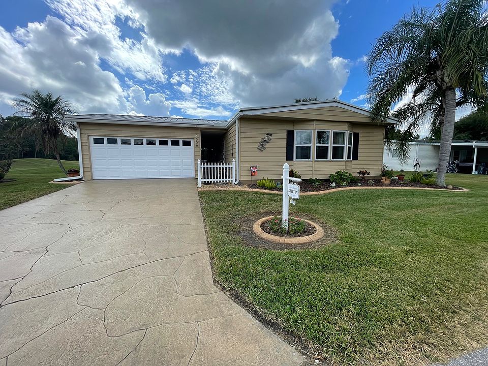 Listed by the Official Sales Team of Cypress Lakes Village ***This home is located within a 55+ resort style leased land community; age restrictions apply.*** Breathtaking views of the Championship golf course - 13th green from the spacious screen lanai, eat in nook, and living room. This 1986 Fuqu home with a garage offers 1,560 SF with 2-bedrooms and 2-bathrooms. When approaching the home from the street, the custom concrete landscape border with gorgeous plants along with the stamped driveway leads you to the garage and covered walk in entry to the lanai or home. The extra-large screen lanai takes in the views of the golf course as well as offering space for an outside dining and lounging area. The inside of the home has been remodeled. Gorgeous kitchen with an island and top of the line appliances. The living and dining rooms have a bank of windows looking out to the green. The tray ceiling and chandelier in the dining room add elegance to the room. Wainscotting and chair rail throughout the home adds to the charm of the home. Both bedrooms will accommodate king-size beds. The primary bedroom offers 2 closets and enough room for a sitting area too. The primary ensuite has dual sinks, 2 closets, and a tile walk-in shower. The utility room accommodates the washer and dryer as well as a full-size closet. This home has loads of storage not to mention all the storage in the garage. The garage also offers an epoxied floor and AC. Other updates completed are a metal roof, 2023 AC, 2023 Vapor Barrier, 2024 gutters, and 2024 whole house water filtration system. The home is being offered unfurnished with a golf cart. A furnished option is available upon request. This home is a must see and there are no projects to do! Call now for your private showing. 3 MONTHS of FREE GOLF on both our Championship & Executive Courses included in sale. ***Listing details are provided by homeowner and are not guaranteed.***