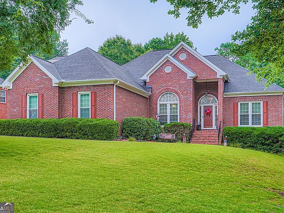 This stunning three-sided brick ranch features three bedrooms, possible 4th bedroom/bonus room, three and a half baths, has an unfinished basement situated on a very private cul-de-sac lot. Enormous bonus room or possible 4th bedroom upstairs, full bath, and large closet. The meticulously maintained yard includes Zoysia grass, irrigation system, brick patio, koi pond, fire pit area, and a garden area, making it ideal for entertainment. The land beyond the backyard is green space and cannot be built.The property includes a side entry garage with a parking pad and is adorned with crown molding and a wood-burning stove. The home boasts of real hardwood floors and a split bedroom plan. The open floor plan seamlessly connects the updated white gourmet kitchen, showcasing beautiful granite countertops. The family and dining rooms, which feature soaring ceilings and wainscoting. Secondary bedrooms supported by Jack-and-Jill full bath. Additional amenities include a large laundry room equipped with cabinets and a sink, a master bedroom with tray ceiling, and a master bathroom featuring a designer soaking tub, separate shower, and dual vanities. The basement is very large, and has a bath stubbed, ready for finishing. This extremely well-maintained home is in a desirable subdivision close to shopping, restaurants, and major highways.