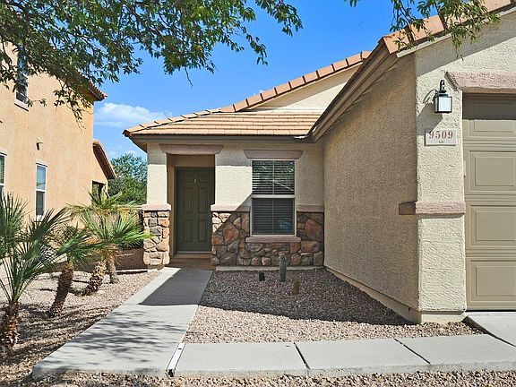 Beautiful Vail area home. Vail schools with Esmond Station Elementary in the neighborhood. Spacious 3 BR/2 BA with lots of upgrades including all tile flooring throughout (no carpet). Kitchen features quartz counter tops, farm house sink, stainless steel appliances, walk in pantry and pendant lights. Primary bedroom and bath features executive height dual vanity & walk in closet. Home backs up to common area. Backyard includes extended paver patio with firepit. Washer/dryer included. Located in the beautiful community of Mountain Vail Estates with easy access to Esmond Station K-8, Empire High, Cienega High, lots of shopping, restaurants and I-10 close by. Non-smoking home. One year minimum lease. Renters insurance required. $45 application fee per adult. Call for pet policy.