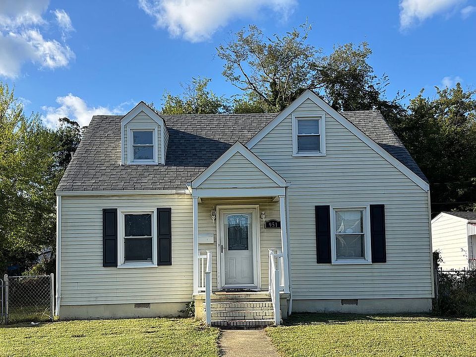 Welcome to the charming neighborhood of Christopher Shores! This Cape Cod home features 3 bedrooms and 2 full bathrooms. The spacious primary bedroom on the first floor, complete with an en suite bathroom and a large closet, offers a peaceful retreat away from the two upstairs bedrooms. Upstairs, you'll find the other two bedrooms, showcasing the unique charm of Cape Cod-style ceilings. The front and back yard provides plenty of space for outdoor fun or creating the yard of your dreams. It's an ideal home for first-time buyers, investors, or anyone seeking a private first-floor primary bedroom. Only minutes from a beautiful scenic water view which offers a walking path and bike lane. Quick access to the interstate. HOME IS BEING SOLD AS IS. SELLER TO MAKE NO REPAIRS.