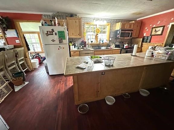 Mini horse farm....Only minutes from town. This 2bdrm 2bth home is all fenced with a large red barn, a detached shop, storage building and sitting on 3.75 acres on a dead end road! Part of the home is the original log cabin where you'll find a nice inviting den with fireplace, and the farmhouse style eat-in kitchen is a delight for guests! Also has a separate laundry room and a sun porch!