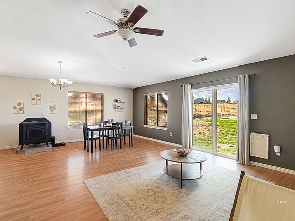Looking for an adorable 3-bedroom home?! Look no further than this updated home with 1,664 sq ft! The large, open-concept main living area features new vinyl plank flooring, a pellet stove & vaulted ceilings. The kitchen has been updated and includes stainless steel appliances, a breakfast bar & new pendant lights. The primary suite is large and includes a remodeled bathroom with double sinks, an extra-large walk-in shower with rainfall showerhead, large closet & a sliding door to the backyard. The guest bedrooms are great sizes and the guest bathroom has also been remodeled! The backyard is completely fenced and has new grass & a sprinkler system + storage shed. The patio was positioned to take advantage of the great view of the Rubies - sit underneath the pergola and enjoy the peace & quiet!