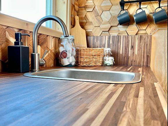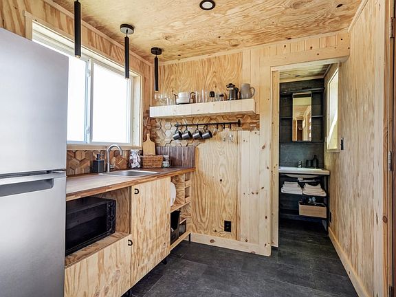 Furnished Tiny Home for rent: This is a brand new 20' container home. It sits on 175 acres just outside of Stephenville. There are four tiny homes located together on this property and it is 3 miles from town. This home is a studio with a king size bed, kitchen, and full bath. It is furnished with all linens, bedding, and towels, as well as a fully stocked kitchen. Full size fridge, microwave, coffee maker, etc. Tiny home has AC and heat with remote control thermostat.