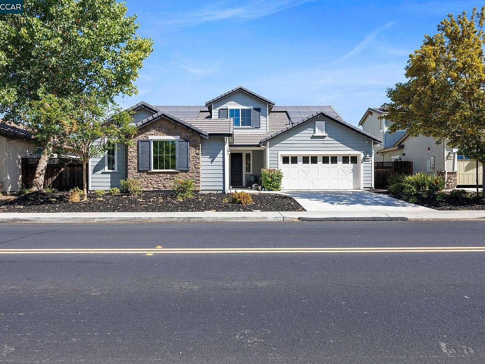 This expansive open concept two-story residence offers a perfect blend of luxury and functionality. With two primary bedrooms on the first level, one of which serves as a charming Jr. Suite/Casita with its own separate entry. This layout is ideal for multi-generational living, hosting guests/in-laws, or potential income-producing rental. The heart of the home features a spacious living area that seamlessly connects to a modern kitchen, making it perfect for entertaining. Upstairs, you'll find a generous loft that serves as an additional living or play area, along with large bedrooms providing ample space for family and friends. This property is equipped with solar panels, including an EV charging station, ensuring both efficiency and sustainability. Step outside to your private oasis, where lush pomegranate and fruit trees create a vibrant backdrop for relaxation and outdoor gatherings. Situated in a desirable Brentwood neighborhood & minutes away from downtown, this home is perfect for those seeking a versatile living arrangement. Welcome home!