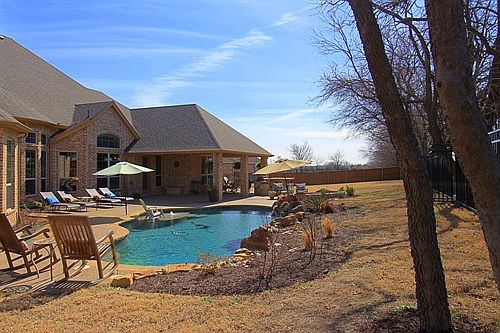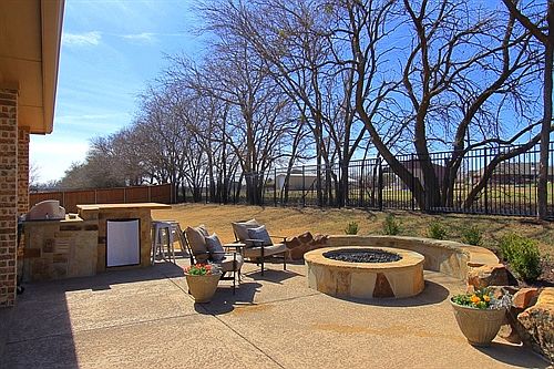 4 car garage,1.5 story on private .5acre treed lot backs to acreage,4 bedrooms down with walkin closets,woodfloors, 8ft doors, vaulted ceilings,double oven, commercial 6-burner cooktop with pot filler &custom tile,high-end lighting,PebbleTech pool with tanning ledge & waterfalls,gas firepit,outdoor kitchen with grill and fridge, tray ceilings in master,granite on all sinks,wetbar&winefridge in gameroom, plantation shutters