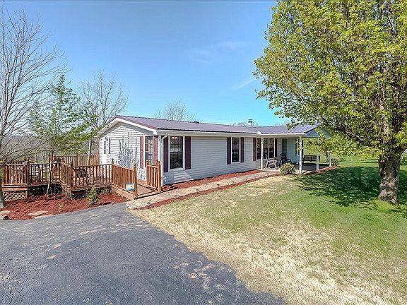 Welcome home to 951 Hickory Ridge Road! This sweet property has all the charm...with mature trees, abundant wildlife, rolling pasture and wooded space all on your own 5 acres. The three bed, two bath home has been immaculately well kept and has been freshly painted and cleaned for its new owner. It has a split floorplan, with the primary bedroom with ensuite bathroom and a walk-in closet on one side and the other bedrooms and bathroom on the opposite. The front porch swing is the perfect afternoon or morning spot as the days begin to warm up. Off the side of the home is a large deck, perfect for entertaining and overlooking your land. There is even a storage building/workshop on the property with not just electric, but a wood burning stove for heat. This property is wonderful for starting your own homestead, raising livestock or even hunting. There is an awesome deer stand towards the back of the property! The roads are wide enough to haul your livestock/equipment trailer, RV or boat! It has it all and it could be yours; come check it out! Being sold as-is, inspections are welcome.