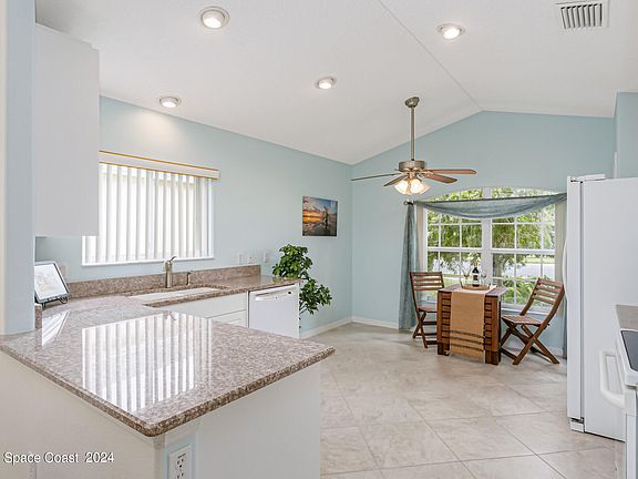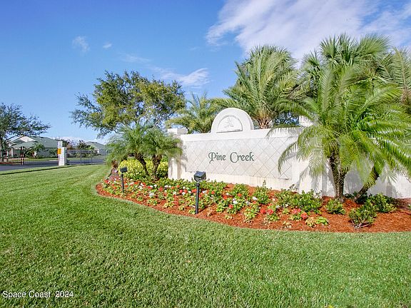 Discover the perfect blend of comfort & style in this turn-key home. The open floor plan & vaulted ceilings create a bright & airy atmosphere. Spacious kitchen features white cabinetry, beautiful granite counters, a pantry & breakfast nook. Upgraded tile flooring in living areas, kitchen, bathrooms & primary suite. The owner's suite offers a huge walk-in closet, double sinks, & a step-in shower. Pine Creek is an active senior community offering regular resident activities, a heated pool & spa, clubhouse & workout room. Located near healthcare, shopping, dining, golf courses, & stunning beaches. Interior laundry with newer washer & dryer. Easy to use Accordion storm shutters & recent roof & A/C replacement will save on Insurance costs. The HOA covers lawn care, sprinklers, internet & cable tv and exterior painting every 8 years - all providing you low maintenance living at its finest.